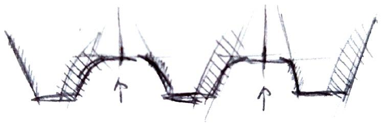 多個 v 形造型的船身 Multiple V-shaped boat hulls