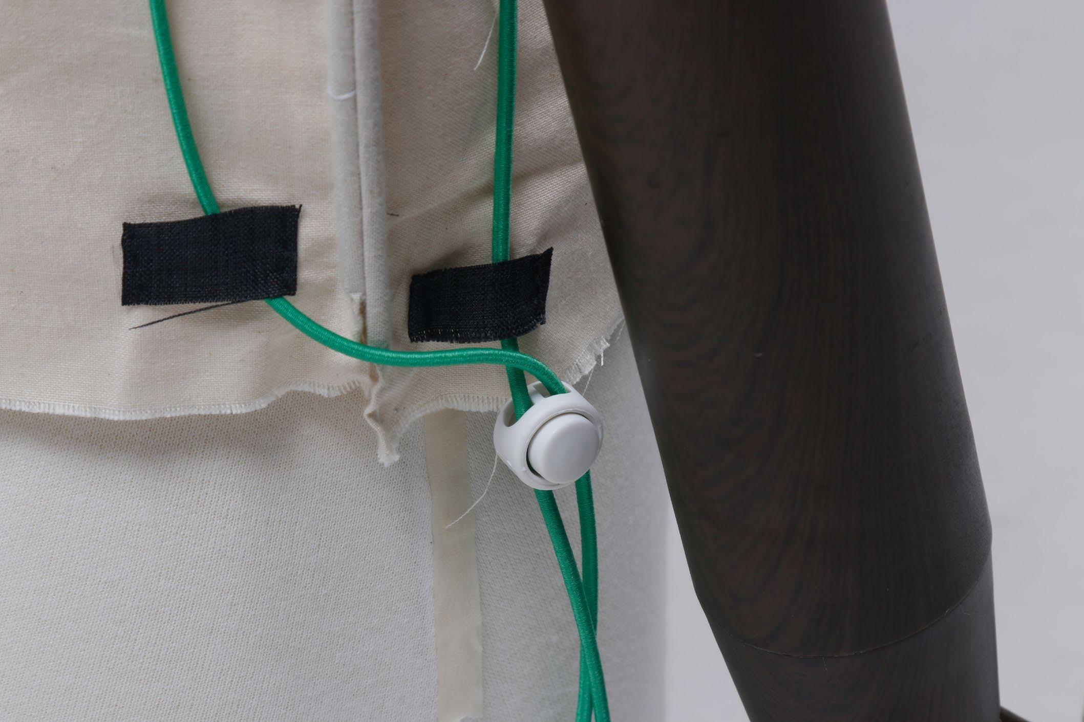 At the beginning stage of my prototype , I've tried different ways to tight up the clothing on the body. Cord lock was a nice option, when we put on the clothing, however it may not be easy enough for the elderly to take off.