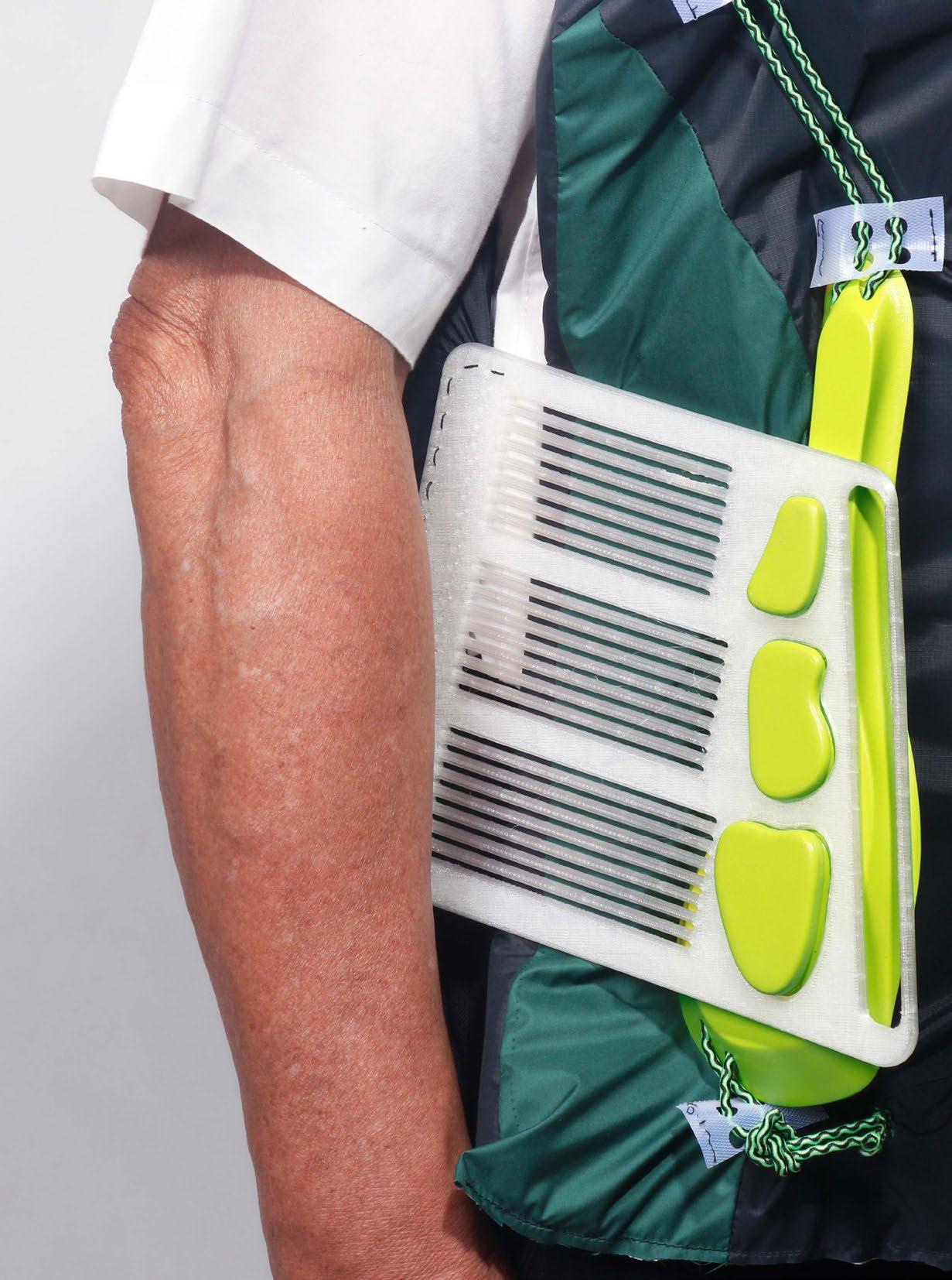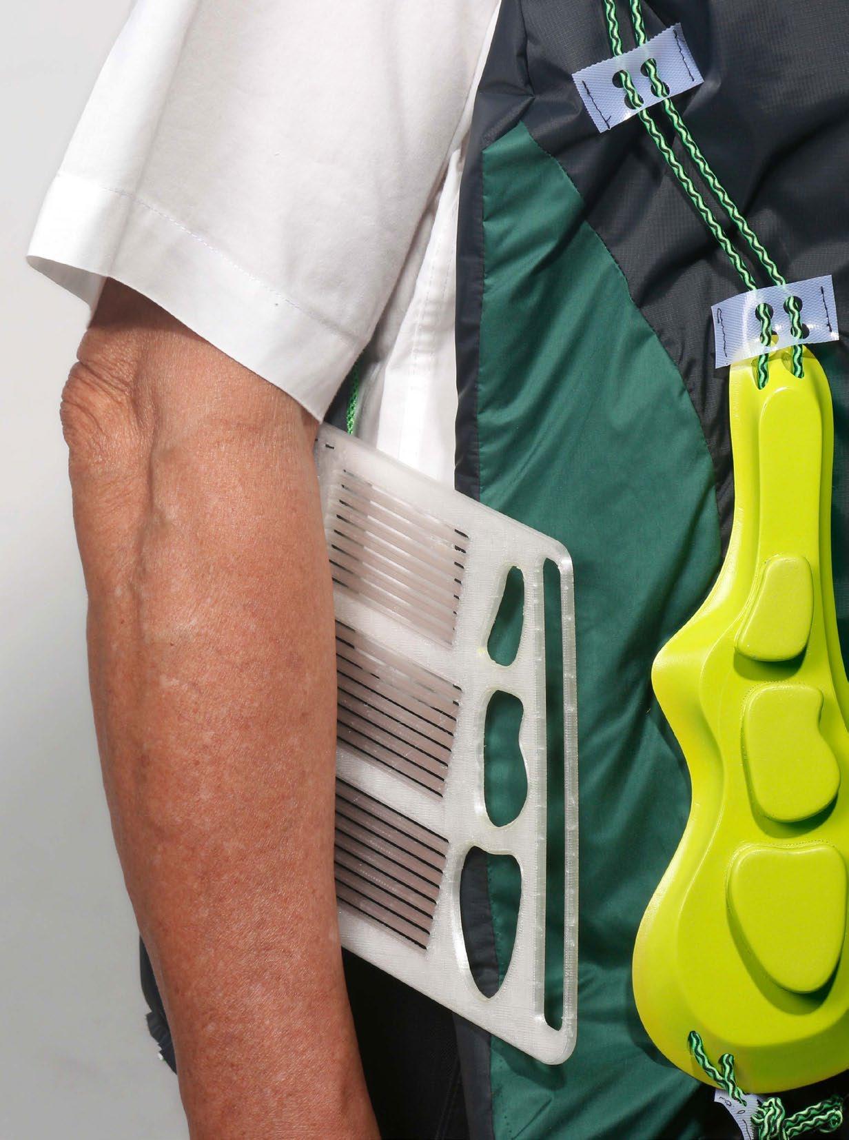 外殼的凹洞使得照顧者更容易幫助患者穿戴 在使用時和使用完畢易於拆卸和組裝