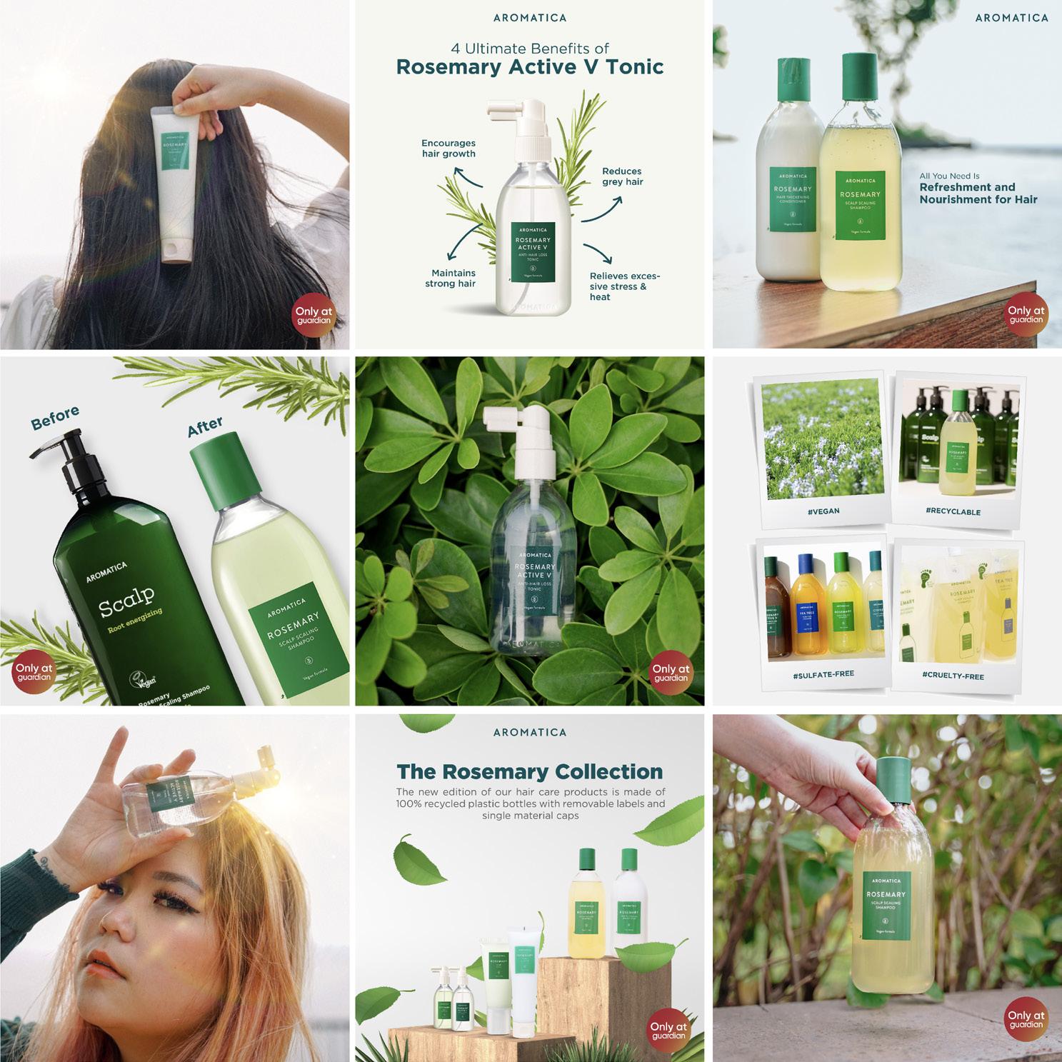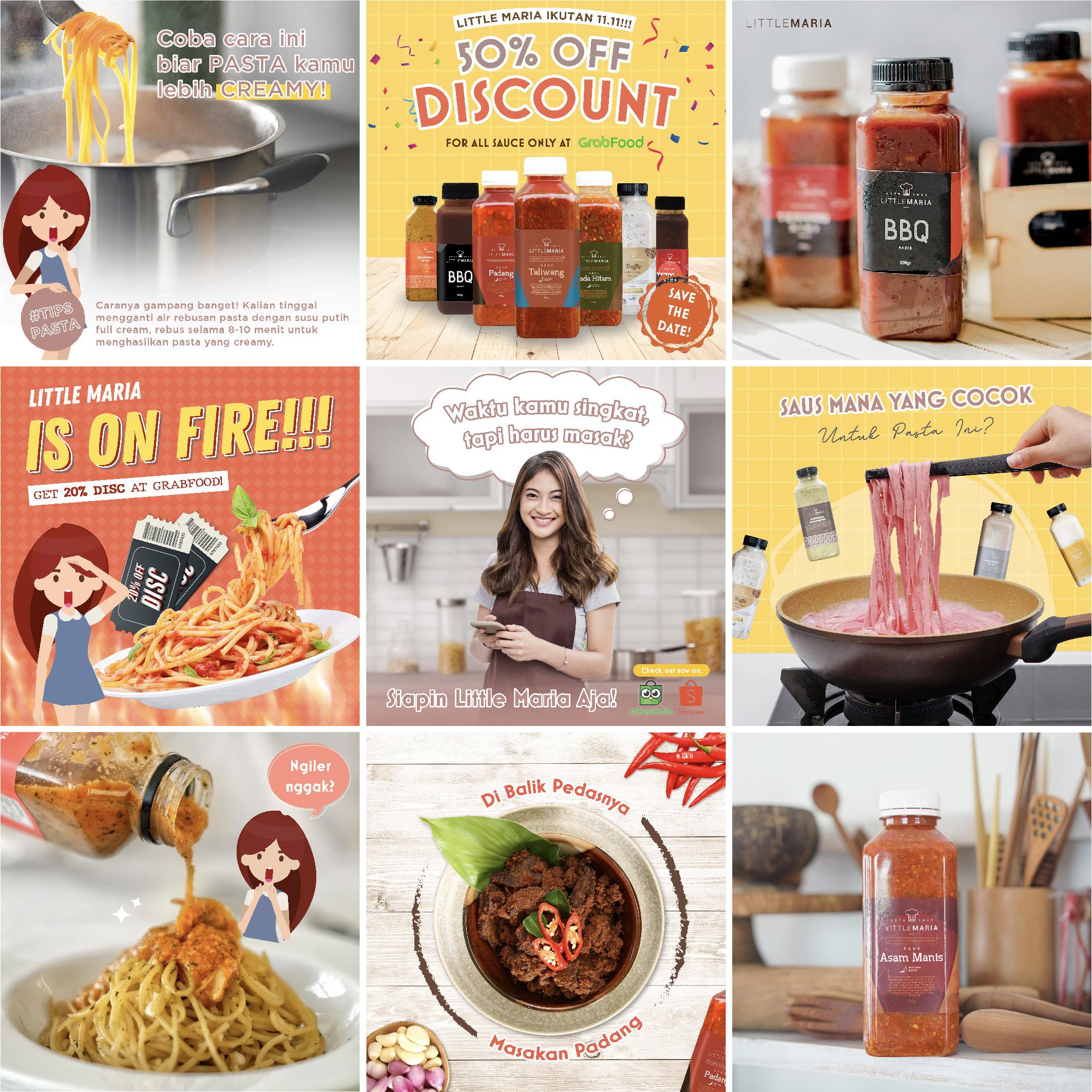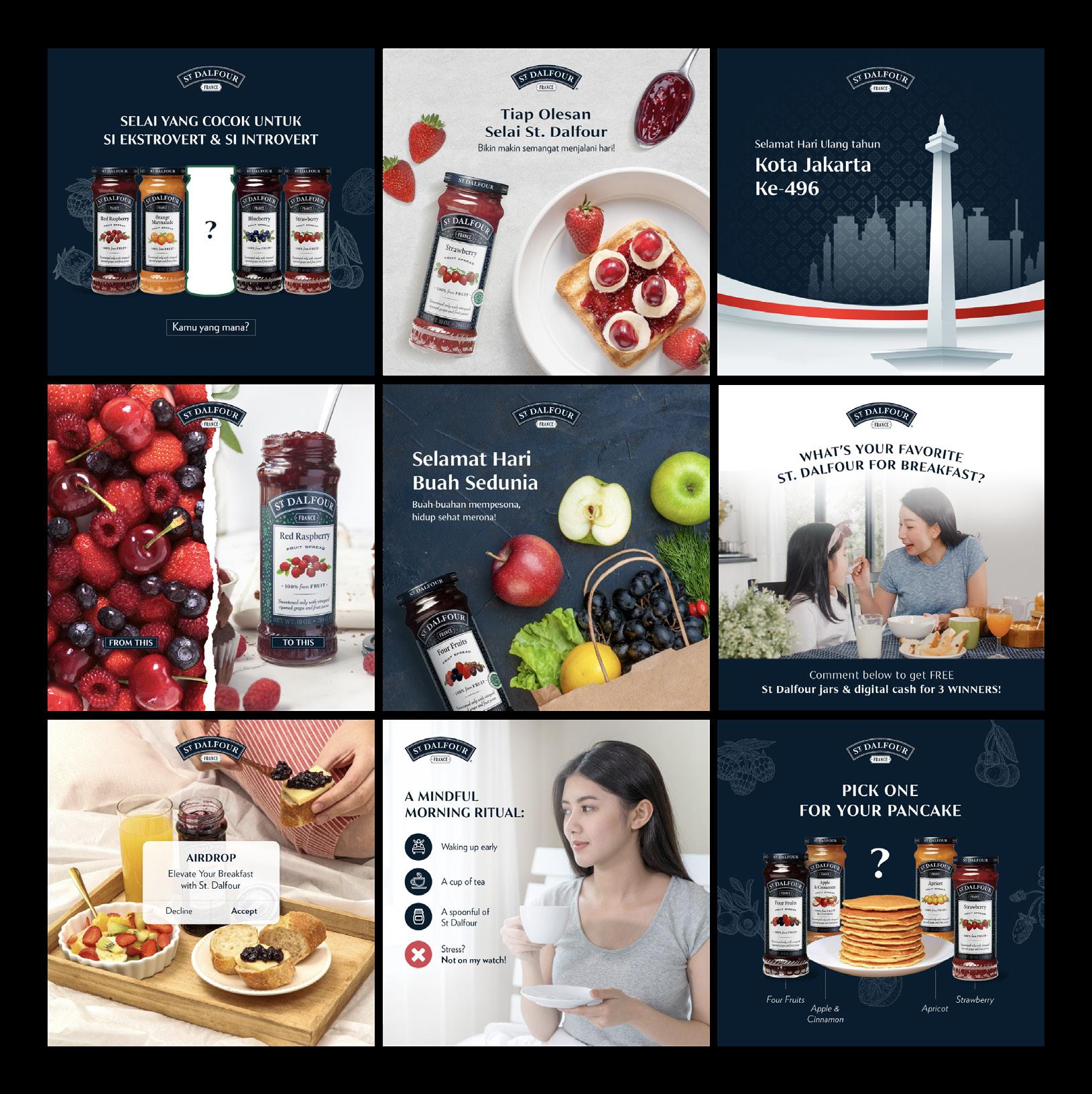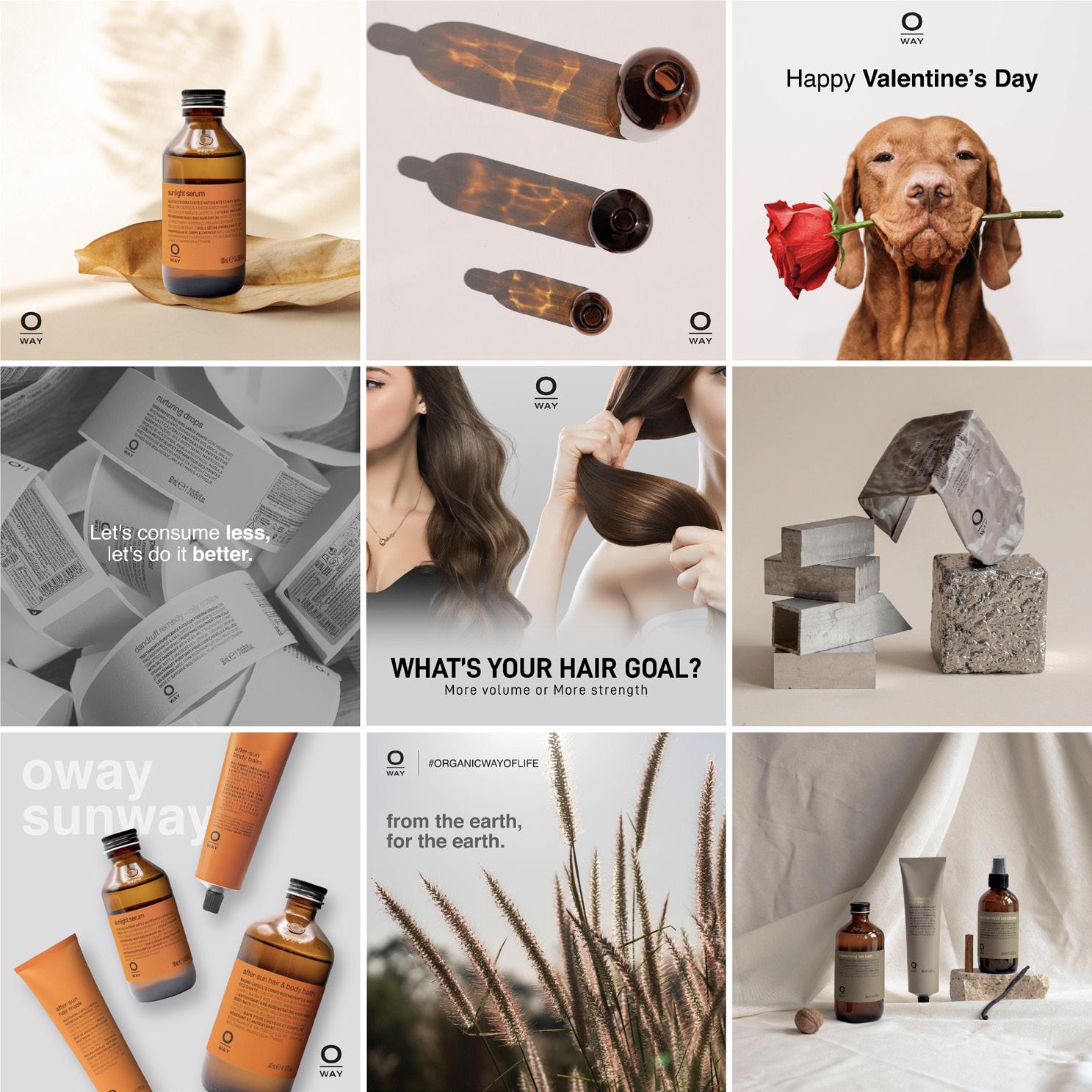 Social media posts of various clients with various design style and identities; food & beverage, beauty, and fashion.