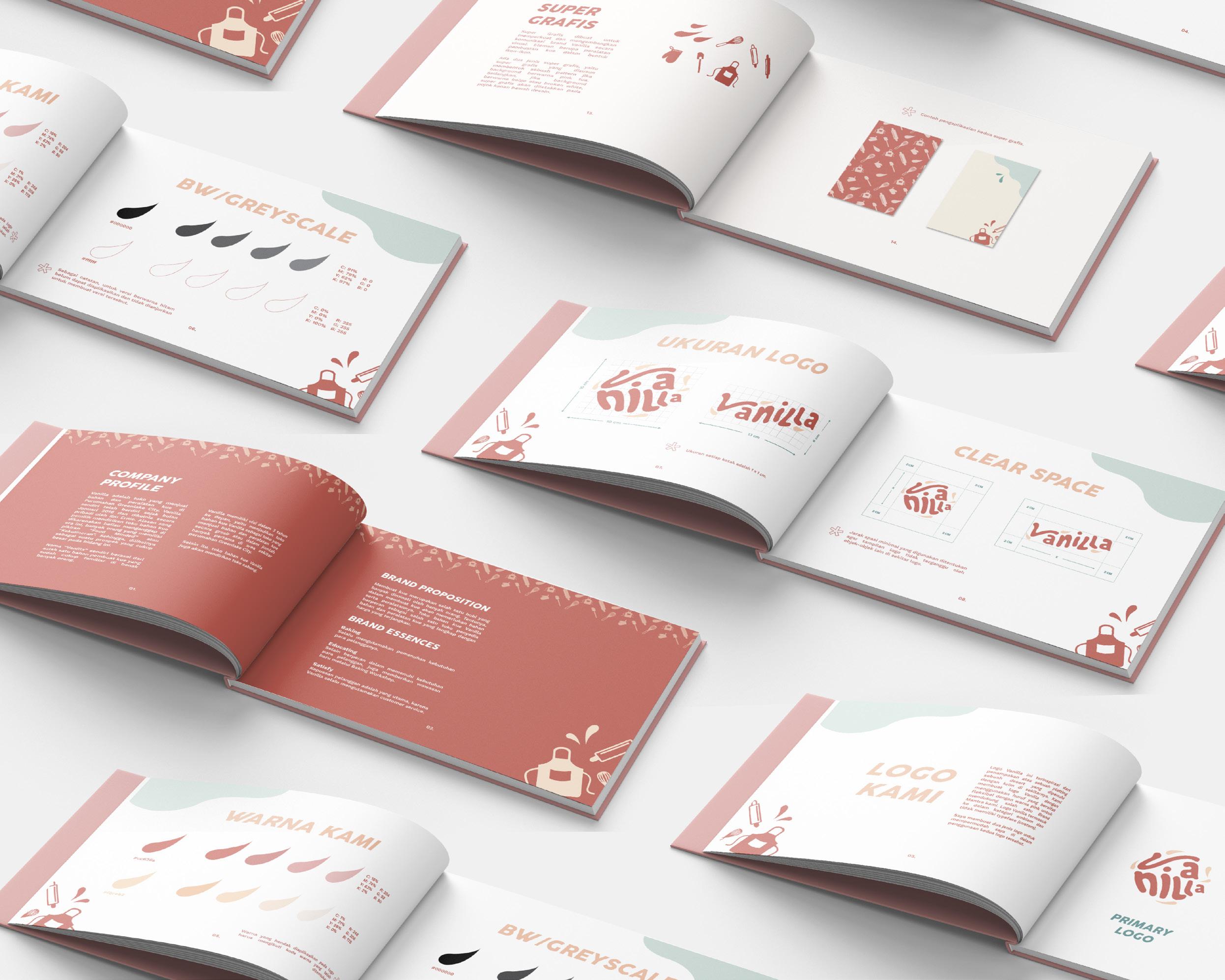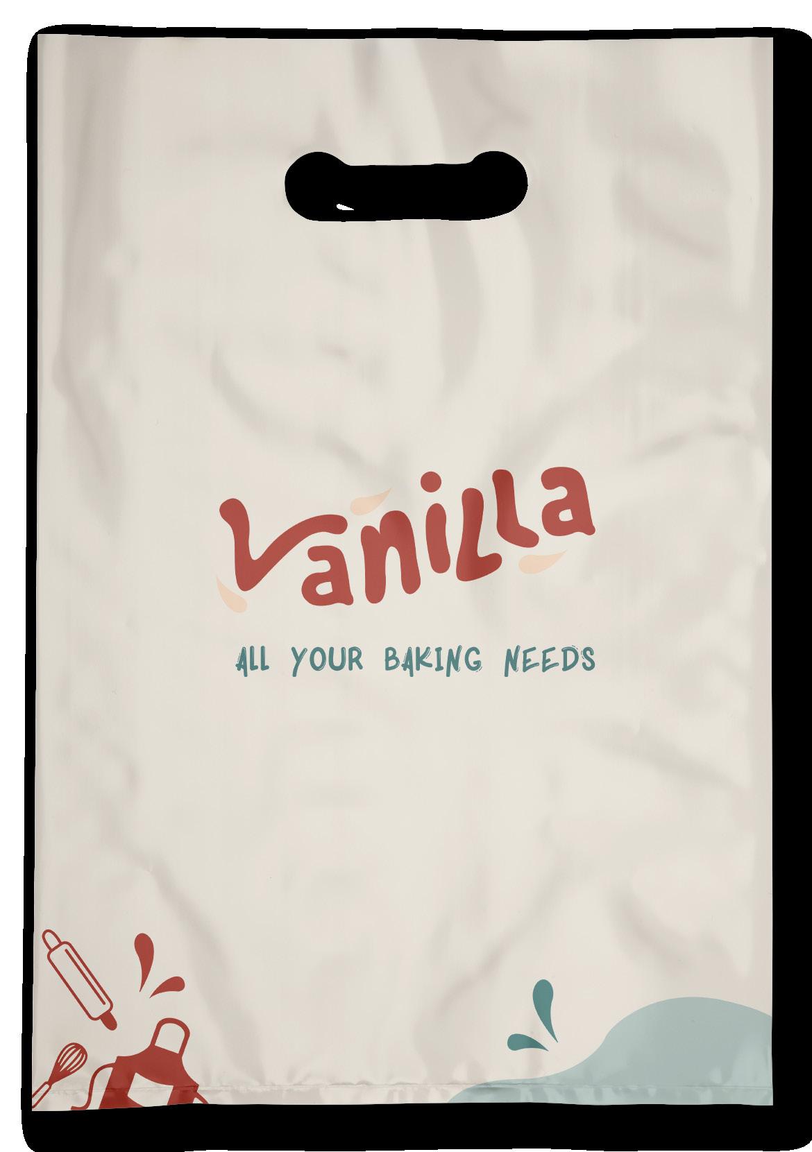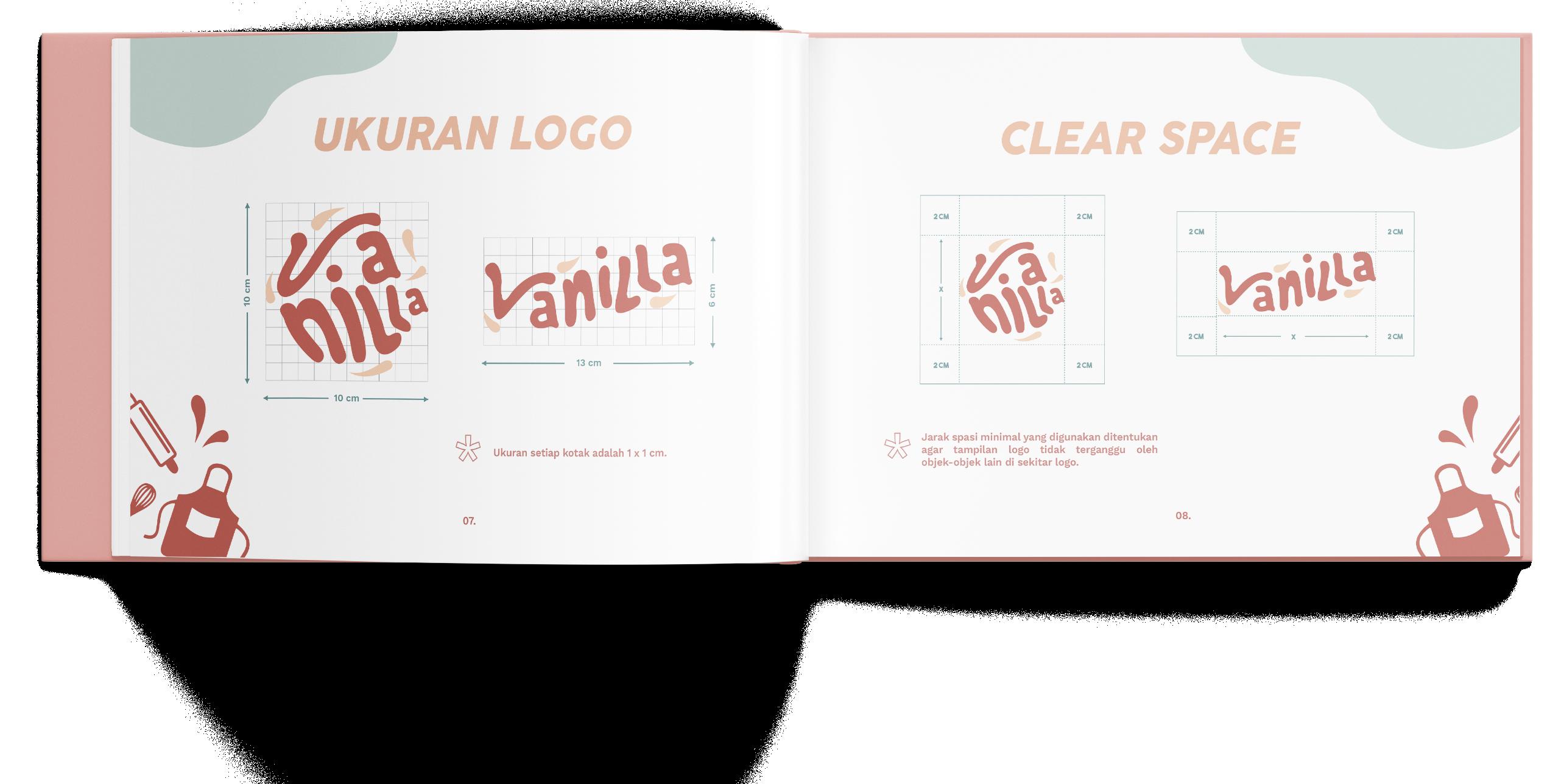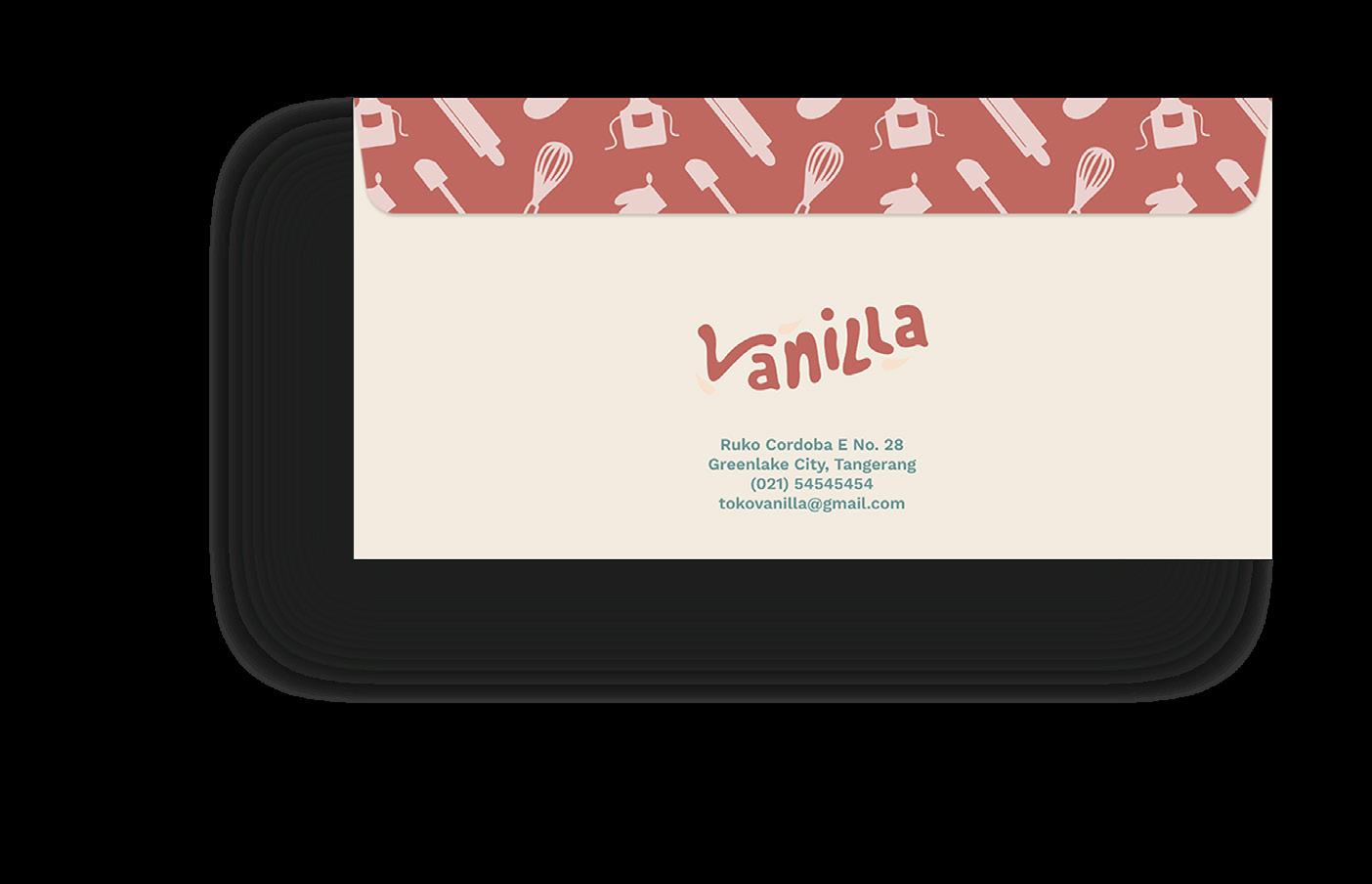 Vanilla is a baking ingredients shop at West Jakarta. The concept is using "cake" colors; pastel colors as the main color of the brand. The new logo looks like a letters that written using a piping bag plastic from top view (looks a bit flexible). Around the logo, there are some elements that represents the shape of creams.