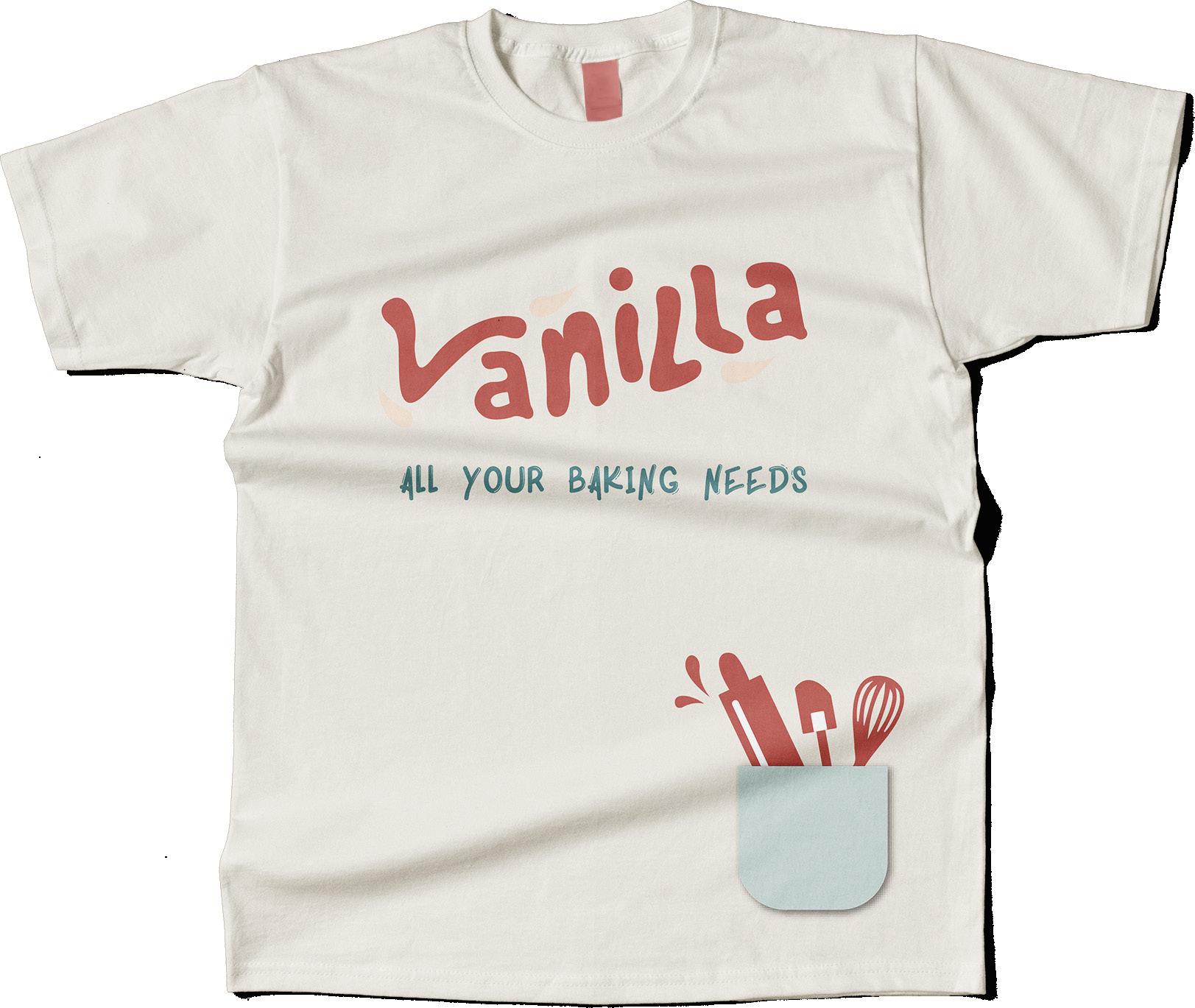 Because Vanilla is a baking ingredients shop, the super graphic that close to it are baking tools; whisk, apron, rolling pin, glove, cream, etc.