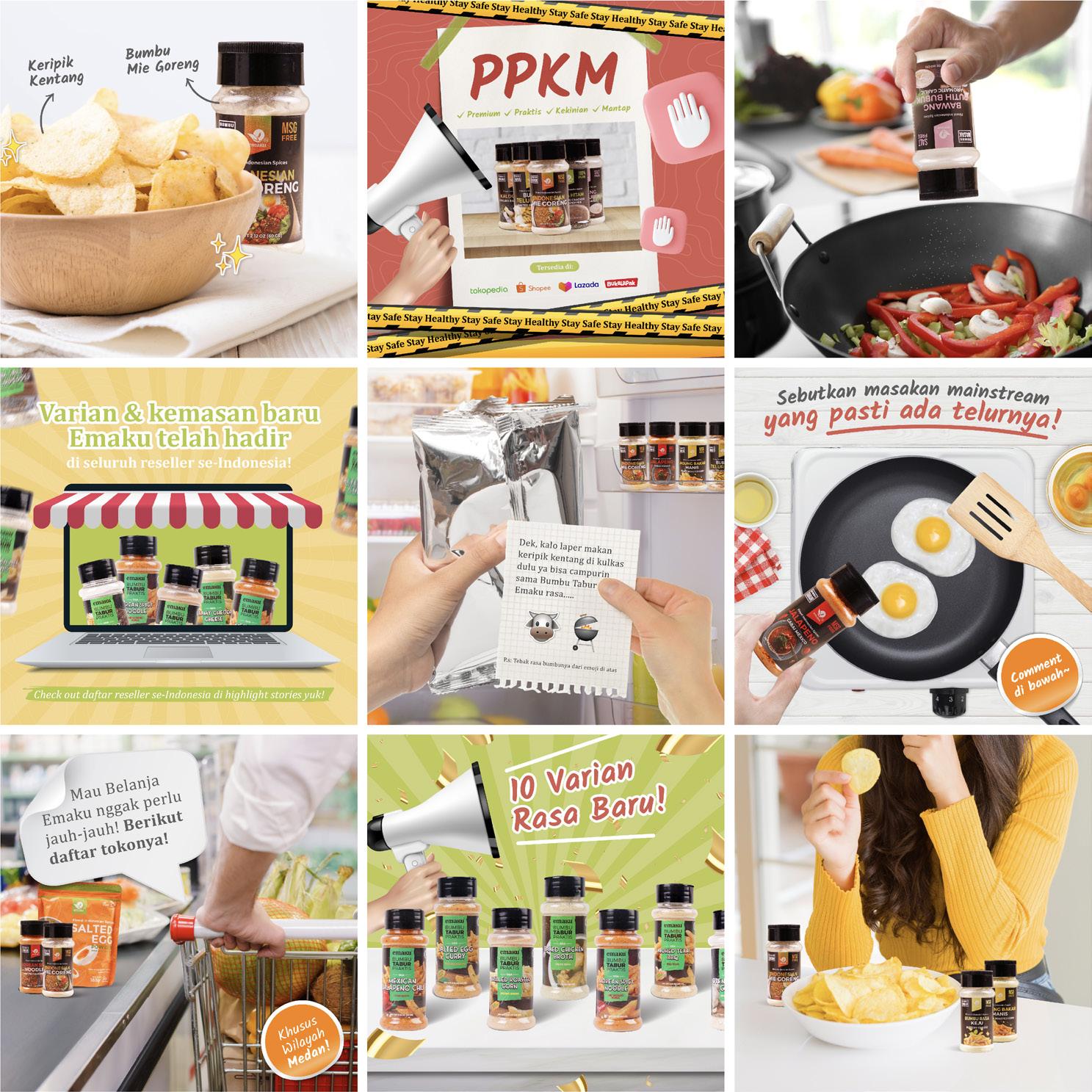 The main idea is to make 2 kind of series; housewife series and the college student series with engaging copywriting to show Emaku as an instant and healthy seasonings product.