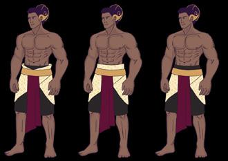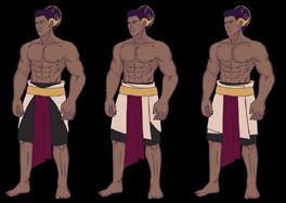 Dursasana’s character sprites are the same size as Biam’s sprites in that they are shown to be larger. The outfits worn by the Dursasana sprites also follow the character designs.