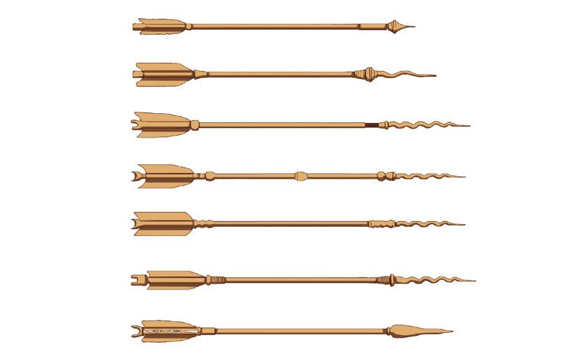 1 • Karna and Arjuna’s bow alternatives (full size) 2 • Karna, Drona and Arjuna sprites bow alternatives 79 THE ARTBOOK OF BHARATAYUDA 3