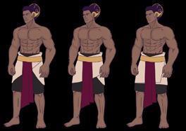 Dursasana’s character sprites are the same size as Biam’s sprites in that they are shown to be larger. The outfits worn by the Dursasana sprites also follow the character designs.