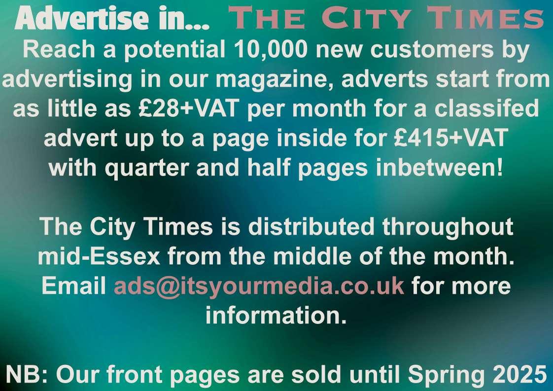 Disclaimer: It’s Your Media Ltd publish The City Times. The opinion expressed in each article is the opinion of its author and does not necessarily reflect the opinion of It’s Your Media Ltd. No part may be reproduced without the prior written permission of It’s Your Media Ltd. Registered offices: 15 Hayes Close, Chelmsford. Reg No 9154871. Printed by Warners (Midlands) PLC.