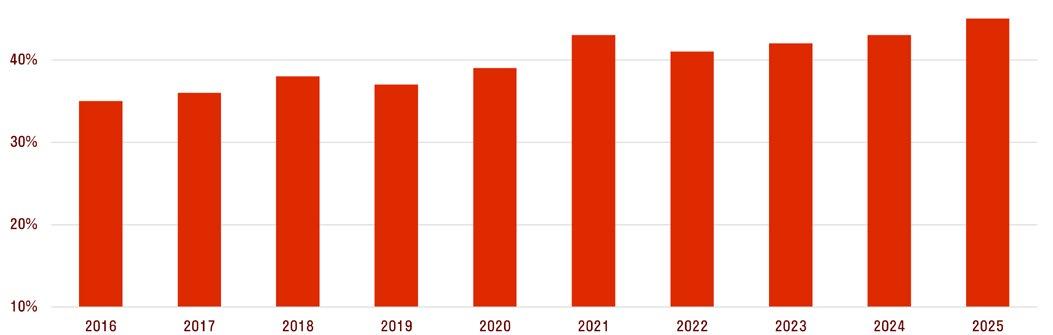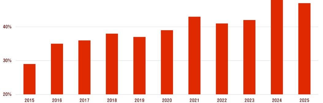 Los resultados del Índice Global de los Derechos de la CSI de este año ofrecen una prueba más de que nuestras libertades democráticas se están viendo atacadas por un número cada vez menor de personas que controlan una porción cada vez más desproporcionada del pastel. En la actualidad, una minúscula fracción de la población mundial –menos del 1%– controla casi la mitad de la riqueza mundial. Esta concentración de poder económico permite a un reducido grupo de multimillonarios ejercer una influencia desmesurada en los procesos de toma de decisiones a escala mundial, en particular las relativas a los derechos y protecciones laborales, lo cual repercute directamente en la vida de los trabajadores y las trabajadoras, que son los que realmente sostienen la economía mundial.