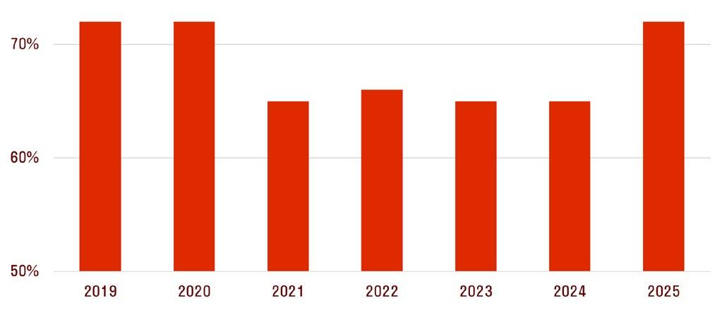 En el 72% de los países se han dado casos de trabajadores que no han tenido acceso o han tenido un acceso restringido a la justicia, lo que supone un aumento considerable con respecto al 65% registrado en 2024 y representa el nivel más alto registrado en el Índice. En Filipinas, siguen pendientes los cargos contra varios activistas que prestaron ayuda humanitaria a comunidades indígenas desplazadas en 2018. Al mismo tiempo, dos sindicalistas franceses arrestados en 2022 en Irán por cargos falsos relacionados con la seguridad nacional permanecen ilegalmente detenidos en condiciones muy duras.