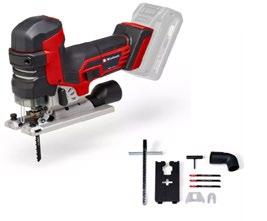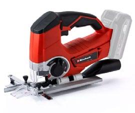 Familia PXC 18 V. Número de golpes 3000. Altura de carrera 13 mm. Profundidad de corte en madera 50 mm. Profundidad de corte en plástico 10 mm. Profundidad de corte en acero 4 mm. Cambio de hoja de sierra sin herramientas $