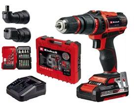Power X-Change. Caja 2 velocidades. Mandril desmontable. Pieza angular 90º para perforar en lugares estrechos. Pieza excéntrica para trabajar en puntos próximos al borde. Iluminación LED. Portapuntas en el equipo. Incluye una batería PXC de 2,0 Ah y un cargador rápido. Incluye set de puntas y brocas de 22 piezas. Envío en maletín E-Box