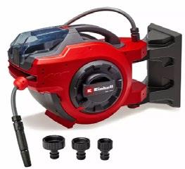 Familia PXC 18v. Para mangueras de hasta 30 m 12,5 mm (1/2"). 2 en 1: estacionaria y móvil (el carro portamangueras se vende por separado). Enrolla pulsando botón. La parada automática. Cepillado en la retracción. Tambor pivotable. Salida de agua residual. Resistente a rayos UV. Incl. accesorios para comenzar a usar.