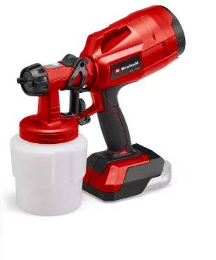Familia PXC 18 V. Sistema de pulverización de pintura barnices y esmaltes en superficies medias y grandes con batería. Regulacion de caudal. 3 boquillas (1,5 mm; 2,5 mm; 3,0 mm), manguera (1,8 m), cepillo de limpieza, aguja de limpieza, recipiente para la prueba de viscosidad, recipiente de pintura de 1200 ml