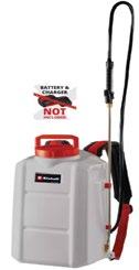 Batería compatible con PXC, Bomba automática. Depósito transparente con escala para control de nivel Boquilla de latón ajustable individualmente Lanza pulverizadora de acero inoxidable con botón de funcionamiento bloqueable Tapa de la batería: brinda protección contra la entrada de agua Correas de transporte acolchadas. Uso: pesticidas / fertilizantes / herbicidas