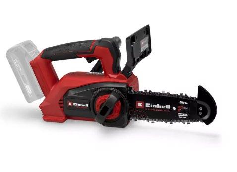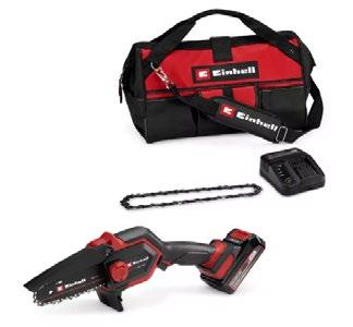 Familia PXC 18v. Motor Brushless. Longitud de corte - 12,5 cm y velocidad de cadena de hasta 4,8 m/s. Motosierra para ramas con batería, cubierta de espada, dosificador de aceite, llave en hexágono, bolsa Einhell 45/29, cadena de repuesto, batería de 2,5 Ah, cargador
