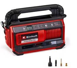 Batería Compatible con Power X-Change 18V. Ideal para inflar neumáticos de automóviles, neumáticos de bicicletas y pelotas. Pantalla digital para una lectura rápida y fácil. Presión máx. 11 bares. Manguera de aire comprimido de 60 cm con válvula para neumáticos para un alcance flexible. Equipo sin batería ni cargador