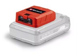 Familia Power X-Change, necesaria 1 batería de 18 V. Fuente de corriente externa para cargar equipos móviles. 1 puerto USB-A de 2,0 A. 1 puerto USB-C de 2,0 A. Pantalla de operación LED. Envío sin batería ni cargador (adquiribles por separado