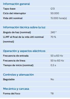 • Instalación sencilla: reemplazo por renovación de Tubos T8 existentes con una mejor calidad de luz