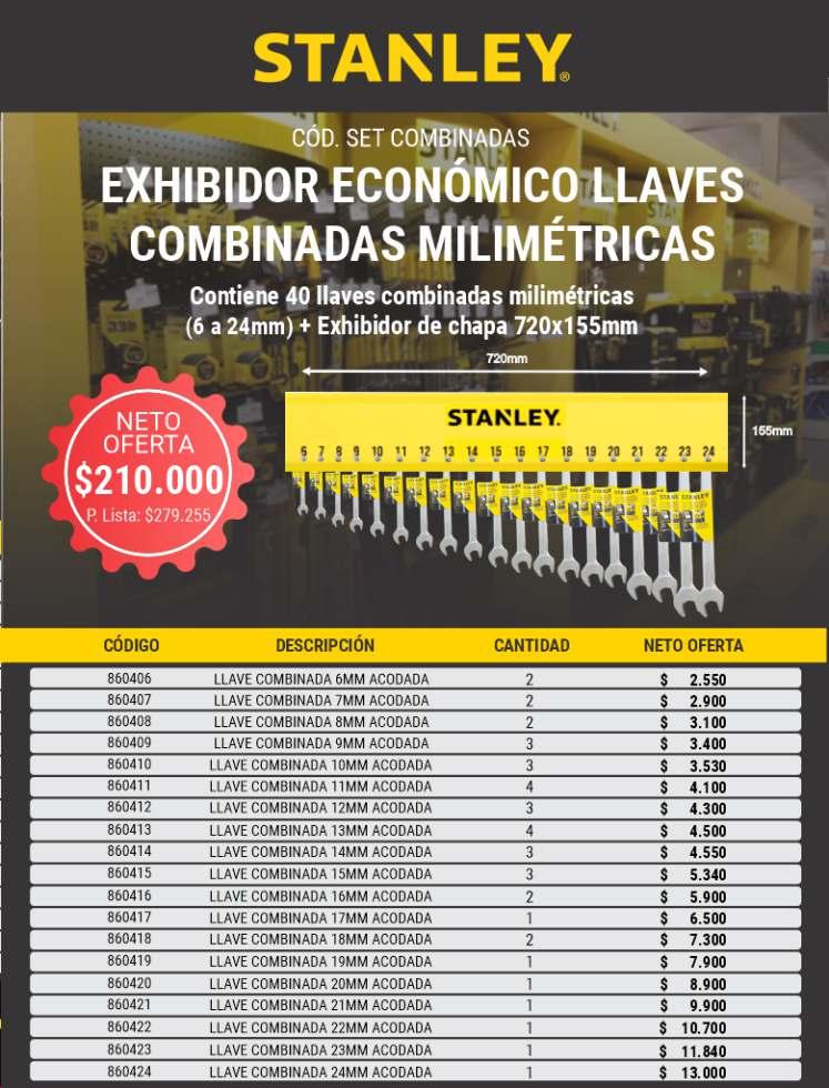 ✔ Tapa superior con 85 herramientas Stanley de Cromo