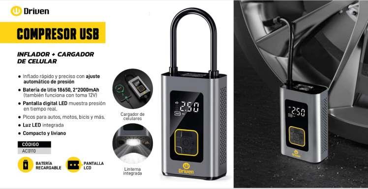 Doble cabezal y pistón. Potencia superior 300l/min. Tiempo de inflado más rápido. Medidor de presión integrado. Manguera profesional rígida de goma. Incluye bolso y picos para inflables. Ideal 4X4, Outdoor, Off Road.