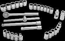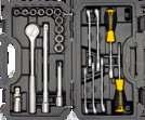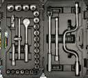 Incluye: 12 tubos hex, de ¼": 4 a 13mm. 10 tubos hex. largos de ¼": 4 a 13mm. 13 tubos hex. de ½": 10 a 32mm. 3 tubos ranurados de ¼": 4, 5.5 y 7mm. 2 barras de extensión de ¼": 50 y 100mm. Junta universal de ¼" y ½". Porta puntas de ¼". Adaptador de bits ¼". Destornillador ¼". Adaptador magnético ¼". 5 puntas phillips: PH0 a PH5. 3 puntas pozidriv de ¼". 6 puntas hex. ¼": 3 a 10mm. 8 puntas torx ¼": T8 a T40. 3 puntas torx de 5/16". 2 barras de extensión de ½". 3 llaves L hex. 1 bocallave para bujías ½" 21mm. 1 adaptador en T de ½". 2 criques de ¼" y ½" 60 dientes. 4 llaves para válvulas de cabeza flexible. 6 llaves combinadas: 8 a 17mm.
