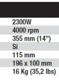 Disco: 4" 1/2. 11000 RPM. Peso 2Kg. Potencia adecuada y mayor control para pequeñas aplicaciones profesionales.