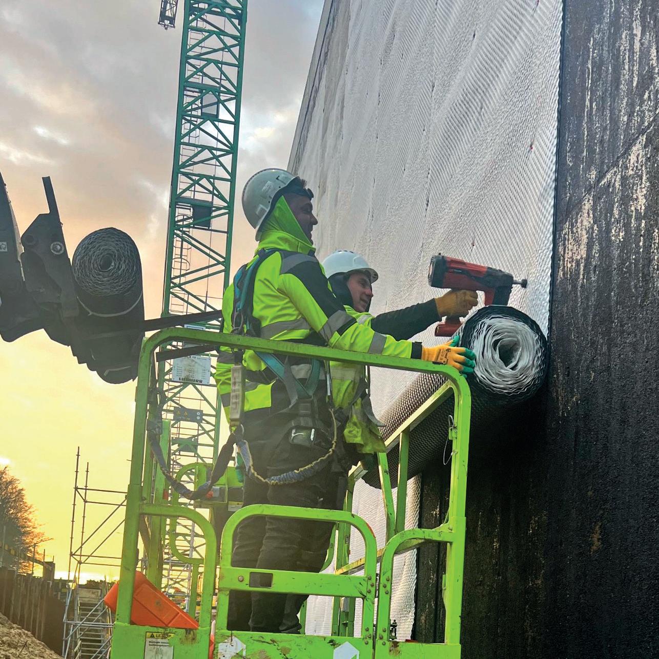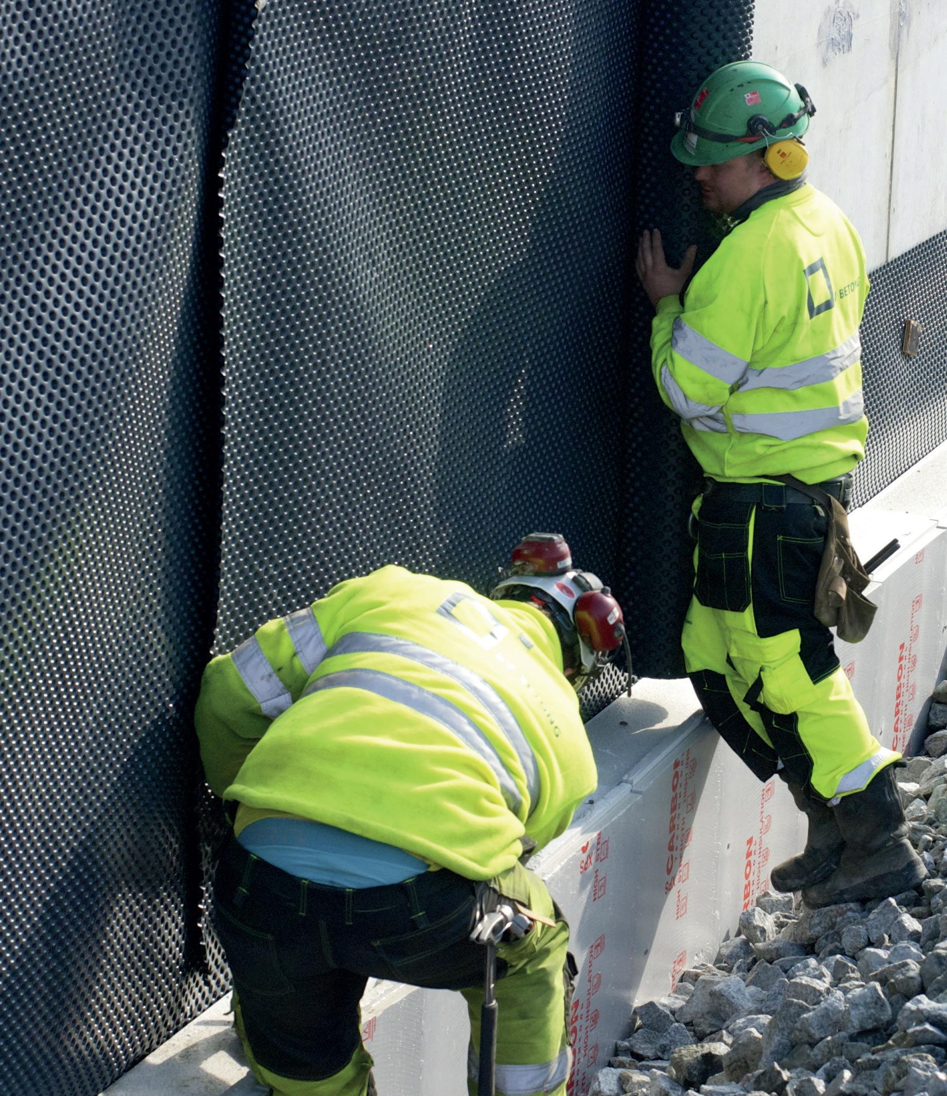 Sans poussière et sans forage. Géotextile, pare-feu, membrane de drainage, isolation