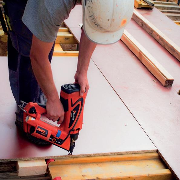 Système le plus puissant, extrêmement équilibré et facile à utiliser pour des épaisseurs à fixer plus grandes. Pour des clous jusqu’à 65 mm.