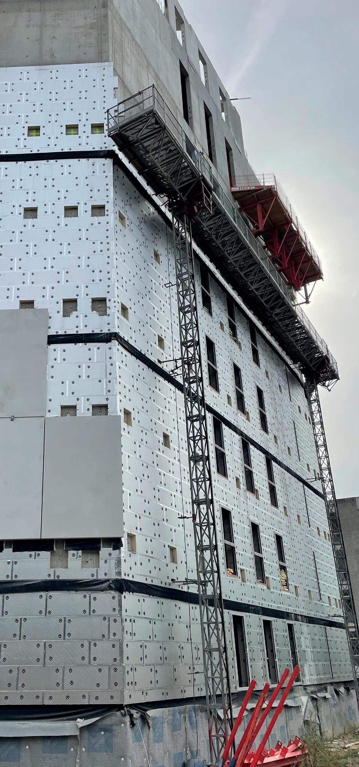 Fixation del’isolation souple et semi-rigide, utilisation sous façades et plafonds ventilés type mur-rideau.