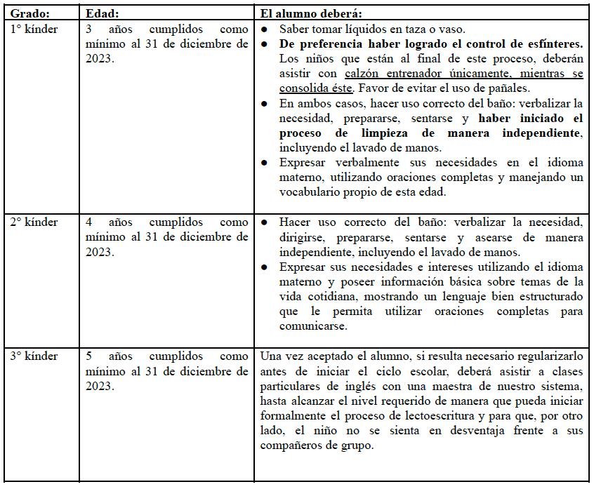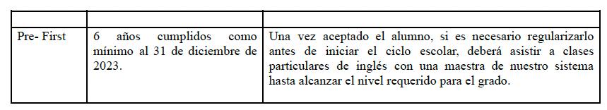 Para alumnos que ingresan a Pre-First, copia del reporte de calificaciones a la fecha y es indispensable que el primer día de clases, entreguen copia del certificado de educación preescolar que expide la SEP, ya que sin éste, el alumno no podrá ingresar a la Primaria en elnciclo 2024-2025