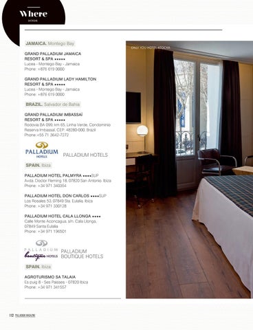 PALLADIUM HOTELS SPAIN. Ibiza PALLADIUM HOTEL PALMYRA SUP Avda. Doctor Fleming 18, 07820 San Antonio. Ibiza Phone: +34 971 340354 PALLADIUM HOTEL DON CARLOS Los Rosales 53, 07849 Sta. Eulalia. Ibiza Phone: +34 971 330128