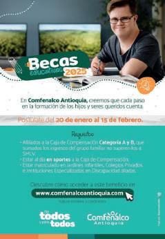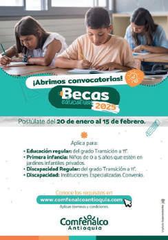 Compartimos información que nos ha llegado respecto de las becas educativas que ofrece nuestra caja de compensación familiar Comfenalco, para la educación regular del grado transición a 11°, una oportunidad muy valiosa para los funcionarios de nuestra Institución.