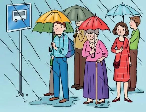 En esta imagen se puede observar la escena de un día lluvioso y vemos a varias personas protegiéndose de la lluvia con ayuda de un paraguas. Sin embargo, hay un grave error que no cualquiera es capaz de notar y la misión será encontrarlo.