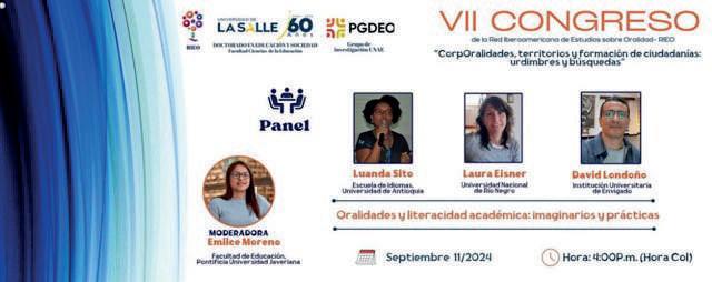 Su participación se desarrolla en el panel sobre oralidad y literacidad académica, conceptos claves en el ámbito educativo que se refieren a las habilidades y prácticas necesarias para el uso efectivo del lenguaje en contextos formativos.