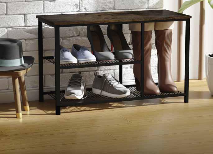 WPONADCZASOWEWZORNICTWOINDUSTRIALNYMSTYLU HOME CREATION Ławka z półką na buty Sztuka w stylu industrialnym z dwoma półkami kratowymi do przechowywania obuwia oraz powierzchnią do siedzenia wykonaną z płyty wiórowej, o wyglądzie ciemnego drewna; wymiary (szer. × wys. × głęb.): ok. 72 × 29 × 45 cm SUPER 169CENA,-SUPERODSOBOTYOD3.09 PASUJE DO POMIESZCZENIAKAŻDEGO HOME CREATION Nowoczesny regał z 4 półkami Sztuka w stylu industrialnym; z metalowym stelażem i drewnianymi półkami; wymiary (szer. × głęb. × wys.): ok. 60 × 30 × 116 cm SUPER 179CENA,HOME CREATION Regał/Wieszak ścienny Sztuka/Zestaw wykonany z płyty wiórowej z powłoką z żywicy melaminowej oraz metalu lakierowanego proszkowo; do wyboru: • 2-częściowy regał ścienny; wymiary (szer. × wys. × głęb.): ok. 60 × 33 × 20 cm wieszak ścienny; wymiary (szer. × wys. × głęb.): ok. 66 × 30 × 27 cm SUPER 99CENA99 Informacja dotyczy wskazanego terminu i posiadanego zapasu (aktualna do czasu jego wyczerpania). Zastrzega się prawo do pomyłek i błędów w druku. W takiej sytuacji ceny lub cechy towarów w gazetce/na stronie internetowej mogą być niezgodne z cenami i cechami oferowanymi w sklepach.aldi.pl38