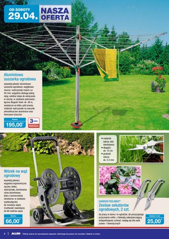 Aluminiowa suszarka ogrodowa wysokiej jakości aluminiowa suszarka ogrodowa; wyjątkowo mocny i wytrzymały maszt o ø 50 mm; wygodna obsługa jedną ręką; solidna tuleja do wkręcania w ziemię; w zestawie pokrowiec; łączna długość linek: ok. 48 m, wystarcza na kilka cykli prania; materiał: wytrzymałe na warunki atmosferyczne aluminium oraz tworzywo sztuczne Sztuka
