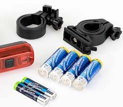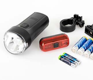 w zestawie: lampa przednia i tylna z diodami LED OSRAM, 6 baterii, uchwyty do montażu; trójstopniowa regulacja natężenia światła; różne rodzaje