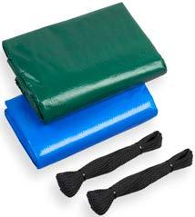 aluminiowe oczka oraz 10-metrowa (plandeka 2 × 3 m) lub 14-metrowa (plandeka 4 × 3 m) linka umożliwiają mocowanie; odpowiednia do przykrywania mebli ogrodowych, piaskownic, opału itp. lub jako osłona zapewniająca prywatność i chroniąca przed wiatrem oraz jako plandeka budowlana i malarska