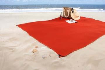 100% poliester, zapobiega osadzaniu się piasku; specjalna tkanina od spodu sprawia, że mata jest nieprzepuszczalna – idealna na plażę, piknik lub kemping; w komplecie 4 kołki (w woreczku) do mocowania w podłożu; wymiary: 150 × 200 cm; rożne kolory