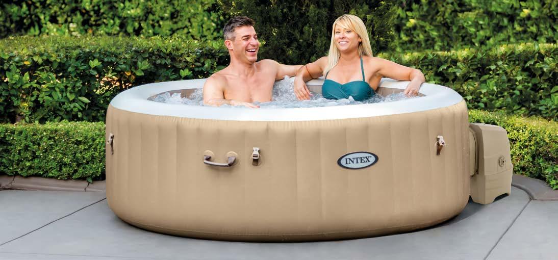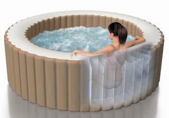 Sezon wakacyjny zbliża się wielkimi krokami, dlatego w naszej ofercie znajdziecie produkt, który zadowoli niejednego miłośnika kąpieli wodnych. Przenośny basen z hydromasażem PureSpaTM firmy INTEX jest dla wszystkich, którzy cenią wygodę i komfort w ogrodowym zaciszu. Dmuchane jacuzzi pomieści 4 osoby. Model PureSpa Bubble Massage został wyposażony w łatwy w obsłudze elektroniczny panel sterowania, dzięki któremu ustawimy odpowiednią temperaturę wody w zakresie od 20 do 40°C i aktywujemy aż 120 dysz bąbelkowych.