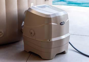 przed osadzaniem się kamienia generuje pole elektromagnetyczne, które porusza wapń i inne minerały w wodzie, tworząc drobne kryształki, które redukują osadzanie się kamienia w PureSpa™, co ułatwia jego filtrowanie.