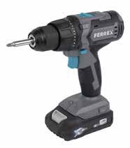 FERREX Wiertarko-wkrętarka 20 V Zestaw uchwyt wiertarski Heavy Duty • 25 ustawień momentu obrotowego + wiercenie moment obrotowy: maks. 45 Nm • lampka robocza LED funkcja szybkiego zatrzymania SUPER CENA