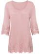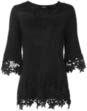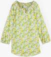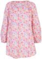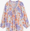 01 | Szeroka bluzka w strukturalny wzór, z falbanami, w fasonie o linii litery A, z nadrukiem i rękawami 3/4, 79,99 zł