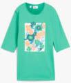 wzór, z falbanami, w fasonie o linii litery A, z nadrukiem i rękawami 3/4