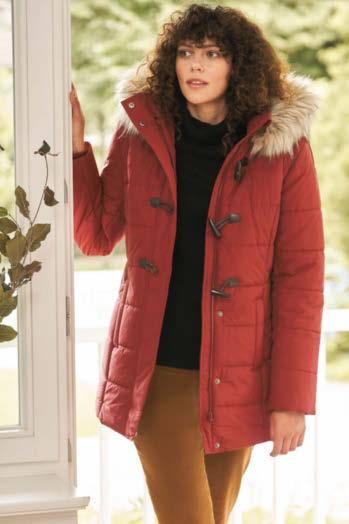 guzikami kołkami, 249,99 zł 55% poliester, 45% poliester z recyklingu, podszewka: 100% poliester, watowanie: 100% poliester, sztuczne futerko: 58% akryl, 42% modakryl. Rozm. 34-50 czerwony kasztanowy
