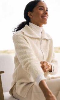 07 | Sweter z przędzy boucle, z poszerzanymi rękawami, 139,99 zł 54% poliester z recyklingu, 45% akryl, 1% elastan.