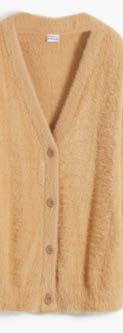 01 | Sweter rozpinany z dzianiny z długim włosem, 124,99 zł 74% poliamid, 17% wiskoza, 9% poliester.
