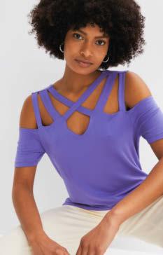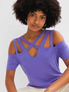 PRZEWIEWNIE I STYLOWO Przyciągający spojrzenia i niezastąpiony latem efektowny top z dekoltem cold-shoulder