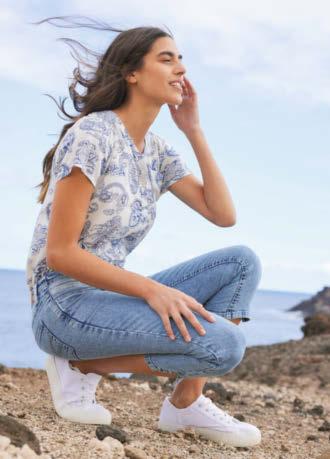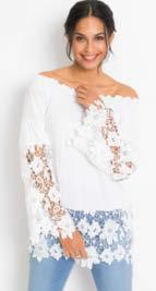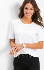 02 | Shirt, krótki rękaw, 79,99 zł Elegancki shirt z koronkową aplikacją i krótkim rękawem. Dł. w rozm. 40/42 ok. 64 cm. materiał wierzchni: 50% bawełna, 50% modal, koronka: 100% bawełna. Rozm. 36/38-52/54 biały 964 593 LK