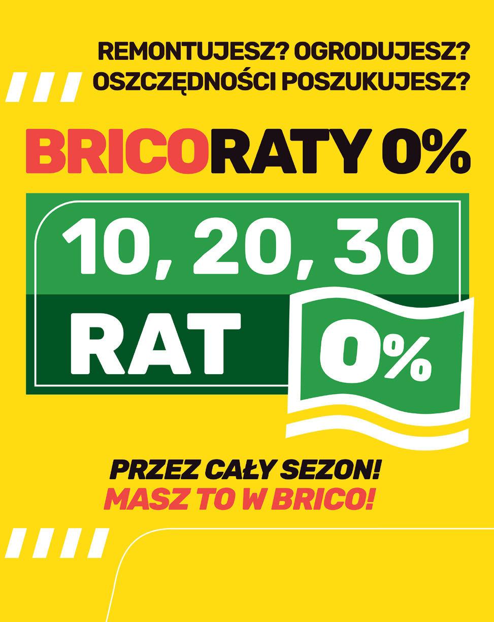 RRSO to Rzeczywista Roczna Stopa Oprocentowania obliczona na dzień 29 marca 2023 r. na reprezentatywnym przykładzie dla bezkosztowego kredytu ratalnego udzielanego przez BNP Paribas Bank Polska S.A. (Bank) w sklepach Bricomarché i wynosi 0%. Okres kredytowania 10, 20 lub 30 miesięcy. Minimalna kwota kredytu to 200 zł dla 10 miesięcy, 300 zł dla 20 miesięcy, 450 zł dla 30 miesięcy. Maksymalna kwota kredytu wynosi 40 000 zł. Udzielenie kredytu zależy od dokonanej przez Bank oceny zdolności kredytowej Klienta. Partnerzy sieci Bricomarché współpracują z Bankiem i są umocowani do dokonywania w imieniu Banku czynności faktycznych i prawnych związanych z zawieraniem umów o kredyt ratalny. Niniejszy materiał nie stanowi oferty w rozumieniu Kodeksu cywilnego. Propozycja kredytu na 10 miesięcy obowiązuje bezterminowo, na 20 i 30 miesięcy do 25.06.2023 r. Szczegółowe informacje u Sprzedawcy lub na www.bricomarche.pl